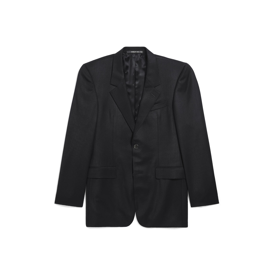 Standard Tailored Jacket in new black wool for Men is from several looks of Balenciaga Winter 25 Collection. PRODUCT DETAILS • Tailoring wool • Notch lapel • Simple-breasted 2 button front • 1 piped pocket at chest • 2 flap pockets at front • 4 button cuffs • 1 vent at back • Made in Italy Main material: 100% wool