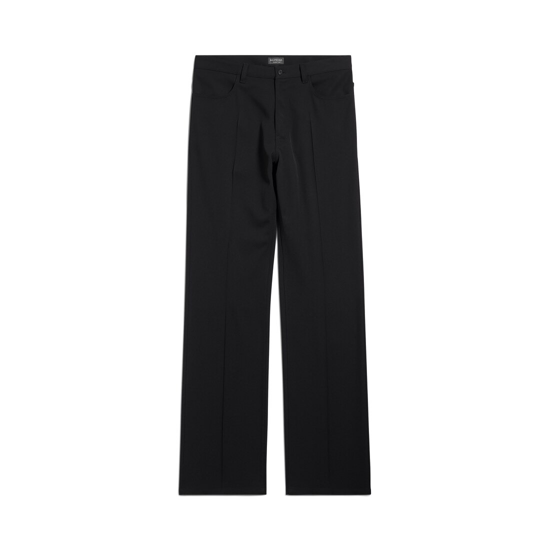 Straight Fit Tailored Pants in black stretch twill are from several looks of Balenciaga Winter 25 Collection. PRODUCT DETAILS • Stretch wool twill • Mid-waist • Covered zip fly • 5 belt loops • 2 slash pockets at front • 1 buttoned pocket at back • Creased leg • Made in Italy Main material: 98% wool, 2% elastane