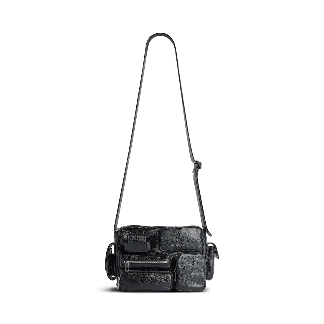 Superbusy Camera Bag in black Arena lambskin, aged-silver hardware PRODUCT DETAILS • Dimensions: L11,4 x H7 x W4,3 inch • Arena lambskin • Camera bag • Adjustable shoulder strap (drop:19,7 inch) • Balenciaga logo debossed with silver foil at front • Aged-silver hardware • Zipped closure • 1 main compartment • 3 zipped pockets at front • 1 EarPods case to fit AirPods Pro at front • 1 card holder at front • 1 flap pocket on each side • BB logo engraved on zipper puller • Cotton canvas lining • Made in Italy Material: lambskin, polyester