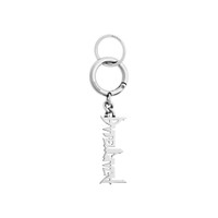 Typo Metal Keychain in antique silver brass, zamak and steel PRODUCT DETAILS • Dimensions: L1,4 x H5,5 x W2,4 inch • Keychain • Brass, zamak and steel • Metal logo • Logo engraved on both rings • Multiple rings to attach on the bag or be used as a keyring • Made in Italy • Wipe with a soft cloth Material: 50% brass, 30% zamak, 20% steel