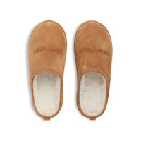 Alaska Slipper in beige split calfskin and off white synthetic material PRODUCT DETAILS • Split calfskin, wool, polyester and acrylic • Slipper • Round toe • Open at back • Balenciaga logo on the upper • Tone-on-tone sole and insole • Made in Italy Upper: calfskin - Sole: TPU - Insole: wool, polyester, acrylic