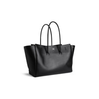 Bel Air Large Carry All Bag in black smooth calfskin, aged-silver hardware PRODUCT DETAILS • Dimensions: L17,3 x H11,8 x W7,4 inch • Smooth calfskin • Carry all • Two handles (drop: 9,4 inch) • Shoulder and hand carry • Balenciaga Paris logo debossed with foil at back • Removable cloche cles with two split rings • Aged-silver hardware • Side snaps • Turn lock closure • Logo engraved on the closure system • Wide front pocket • 1 main compartment • 2 inner zipped pockets • 2 inner flat pockets • Nappa lambskin bonded lining • Made in Italy Material: calfskin