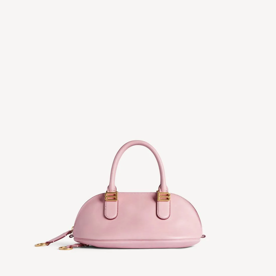 Bolero Bowling Bag Mini in rose quartz smooth calfskin and moka nappa lambskin lining, aged-gold hardware PRODUCT DETAILS • Smooth calfskin • Bowling bag • Two handles with Bolero B logo • Adjustable and removable strap • Shoulder, crossbody and hand carry • Aged-gold hardware • Zipped closure with leather pull tab and ring • Zipped pocket on the bottom with leather pull tab and ring • 1 main compartment • Contrasting nappa lambskin lining • Made in Italy Material: calfskin