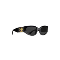 Bossy Round AF Sunglasses in black Eastman Acetate Renew, an acetate alternative partially made of bio-based and recycled content, with grey lenses PRODUCT DETAILS • Temple length: 4,9 inch • Bridge length: 0,7 inch • Eastman Acetate Renew (40% bio-based, 27% recycled) • Round shape • Adjusted fit • Hidden hinges within the shiny gold BB logo • Lasered logo on the right lens • Lens material: Nylon • Lens category: 3 • 100% UVA/UVB protection • Not suitable for optical conversion • Made in Italy • Wipe with a soft cloth • BB0324SK Material: 100% acetate