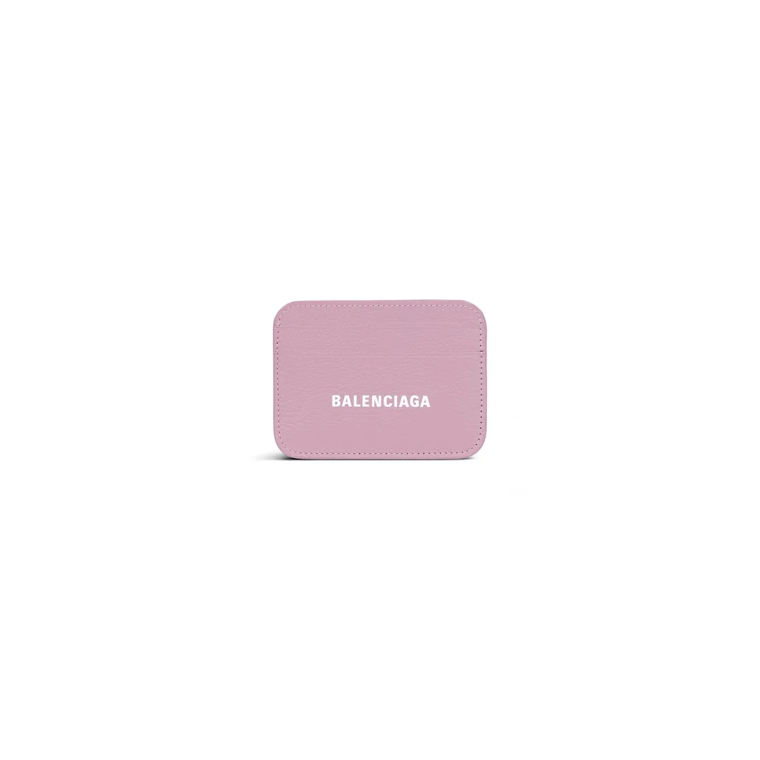 Cash Card Holder in light pink and white grained calfskin PRODUCT DETAILS • Dimensions: L3,9 x H2,9 x W0,4 inch • Grained calfskin • Card holder • Rounded edges • Balenciaga logo printed at front • 4 card slots • 1 bill pocket • Made in Italy • Wipe with a soft cloth Material: 100% calfskin