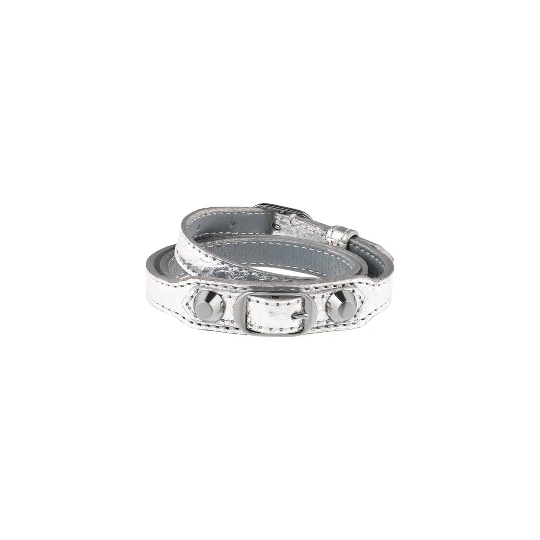 City Triple Bracelet in silver metallized Arena lambskin and shiny silver brass PRODUCT DETAILS • Metallized Arena lambskin and brass • Triple tour bracelet • Shiny silver studs • Adjustable closure • Made in Italy • This item is nickel-free, lead-free, and hypoallergenic Material: lambskin, brass