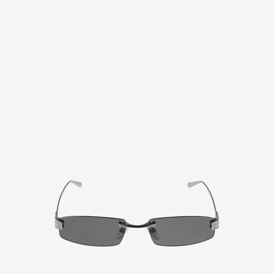 Gossip Rectangle Sunglasses in light silver metal, with grey lenses PRODUCT DETAILS • Full metal temples and rimless frame • Rectangle shape • Standard fit • Hidden hinges within the BB logo • Adjustable nose pads with BB logo • Lens material: Bio-Nylon • Lens category: 3 • 100% UVA/UVB protection • Not suitable for optical conversion • Made in Japan • BB0488S Material: metal