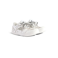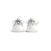 Hamptons Clean Sneaker in white cowskin and polyester PRODUCT DETAILS • Cowskin and polyester • Sneaker • Scribbled laces • Raw edge and visible stitching on the upper • Balenciaga logo debossed on the upper • Balenciaga logo embossed on the outsole • 3B sports icon artwork in rubber on each side • Loop sports icon logo on the tongue and at back heel • Written size debossed on the upper and at back of the heel • Made in China Upper: cowskin, polyester - Sole: rubber - Insole: foam