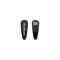 Holli Hair Clip Set of 2 in black and white acetate and shiny silver stainless steel PRODUCT DETAILS • Dimensions: L2,37 x H0,87 x W0,52 inch • Acetate and stainless steel • Hair clip • BB and Balenciaga logos engraved and enameled • Metal clip on the back • Set of 2 • Made in Italy • This item is nickel-free, lead-free, and hypoallergenic Material: acetate, steel