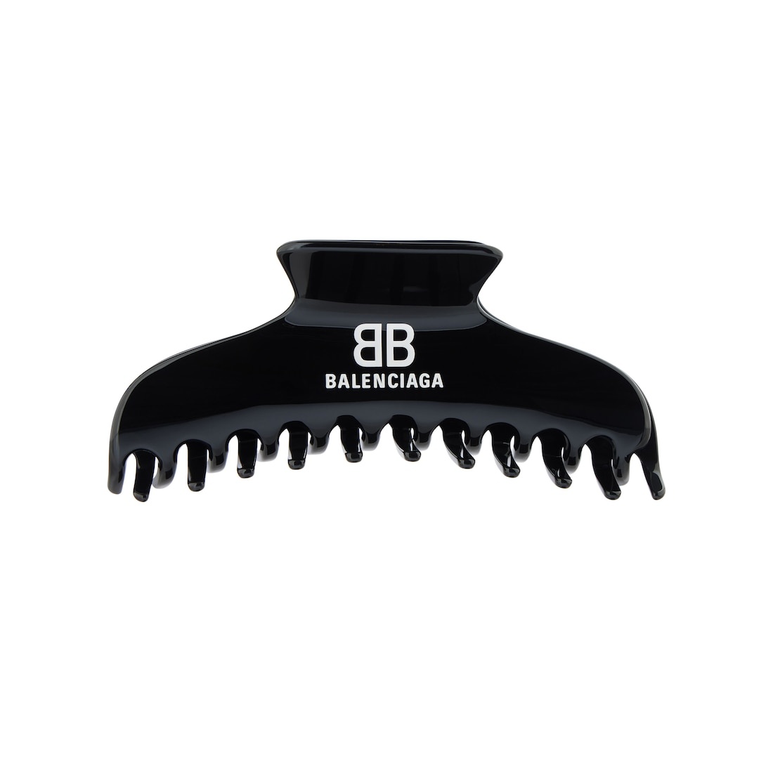 Holli Hair Grip in black and white acetate and stainless steel PRODUCT DETAILS • Dimensions: L5,12 x H1,97 x W1,74 inch • Acetate and stainless steel • Hair grip • BB Balenciaga logo printed • Made in France • This item is nickel-free, lead-free, and hypoallergenic Material: acetate, stainless steel