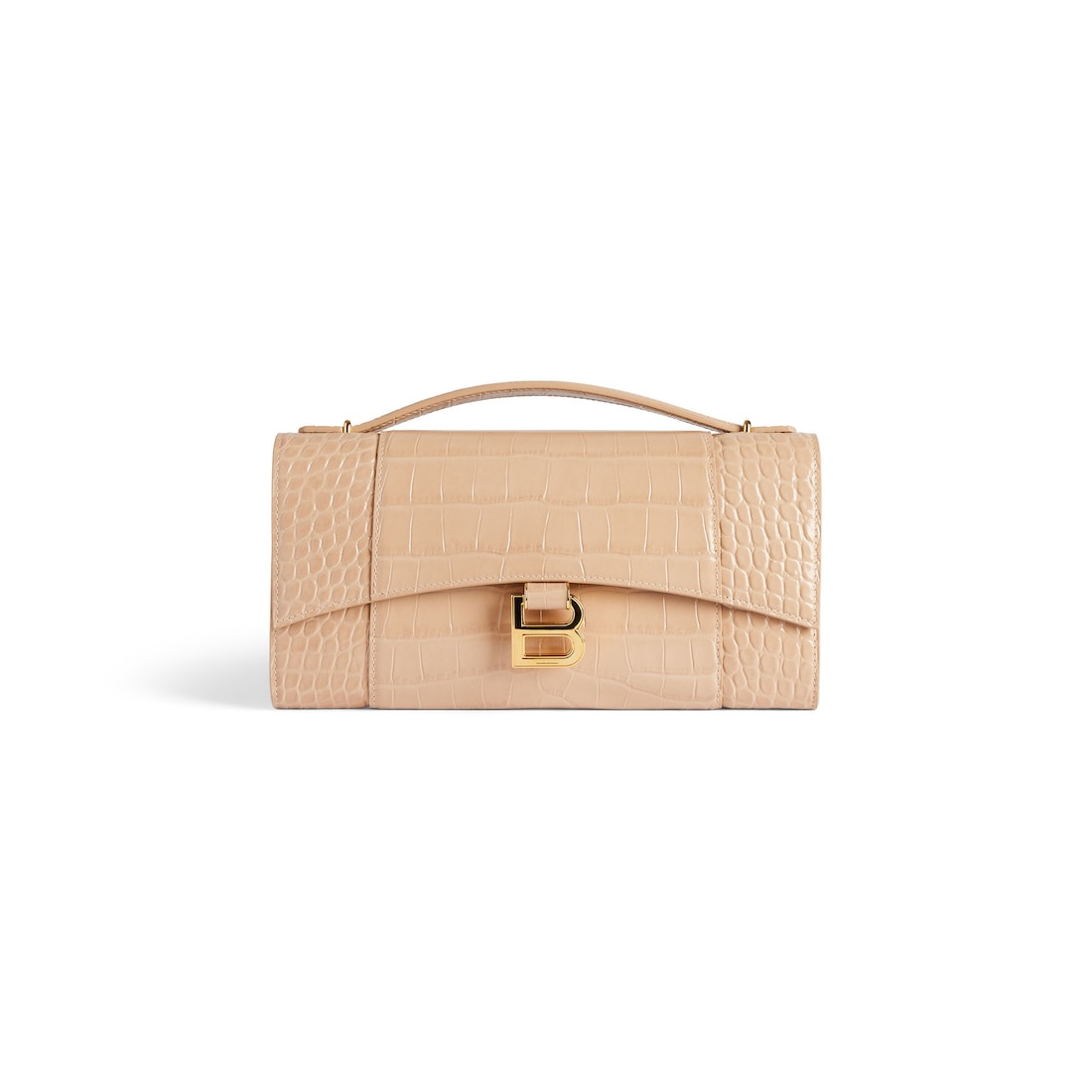 Hourglass Pochette With Chain in nude soft crocodile embossed calfskin, shiny gold hardware PRODUCT DETAILS • Dimensions: L10,2 x H6,7 x W1,7 inch • Soft crocodile embossed calfskin • Pochette • One handle • Removable chain strap (drop: 21,6 inch) • Crossbody and hand carry • Shiny gold B logo hardware • Studded magnet closure • 1 main compartment • 6 inner card slots • Nappa lambskin lining • Made in Italy Material: calfskin