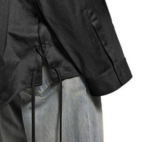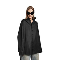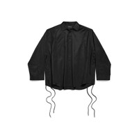 Lace-Up Shirt in black cotton gabardine PRODUCT DETAILS • Cotton gabardine • Shirt collar • 8 button front • Dropped shoulders • Long sleeves • Buttoned cuffs • Lace-up construction on both sides • Rounded hem • Balenciaga engraved buttons • Made in Italy Main material: 100% cotton