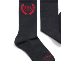 Laurel Classic Socks in black and white cotton blend PRODUCT DETAILS • Cotton blend • High socks • Breathable fabric • Laurel Classic artwork on upper ankle • Balenciaga Logo on foot • Ribbed finishing • Made in Portugal Main material: 76% cotton, 22% polyamide, 2% elastane