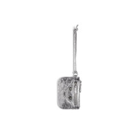 Le Cagole Coin Purse in silver metallized Arena lambskin PRODUCT DETAILS • Dimensions: L5,1 x H3,3 x W0,4 inch • Metallized Arena lambskin • Coin purse • One strap (5,9 inch) • Aged-silver hardware • Front zipped pocket • Zipped closure • 1 main compartment • Made in Italy • Wipe with a soft cloth Material: 100% lambskin