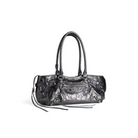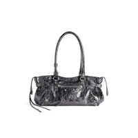 Le City Bag East-West in steel grey metallized Arena lambskin, shiny silver hardware PRODUCT DETAILS • Metallized Arena lambskin • Two handles with one handle clip • Shoulder carry • Shiny silver hardware • Zipped closure with knotted leather puller • Front zipped pocket with knotted leather puller • 1 main compartment • 1 inner flat pocket • Cotton canvas lining • Made in Italy Material: lambskin