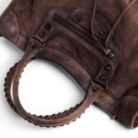 Le City Bag Medium in light espresso waxed suede calfskin, brass hardware PRODUCT DETAILS • Dimensions: L15,1 x H9,4 x W5,3 inch • Waxed suede calfskin • Two hand-braided handles • Adjustable and removable shoulder strap (drop: 20,8 inch) • Brass hardware • Zipped closure with knotted leather puller • Front zipped pocket with knotted leather puller • 1 inner zipped pocket • Cotton canvas lining • Made in Italy Material: calfskin, cotton
