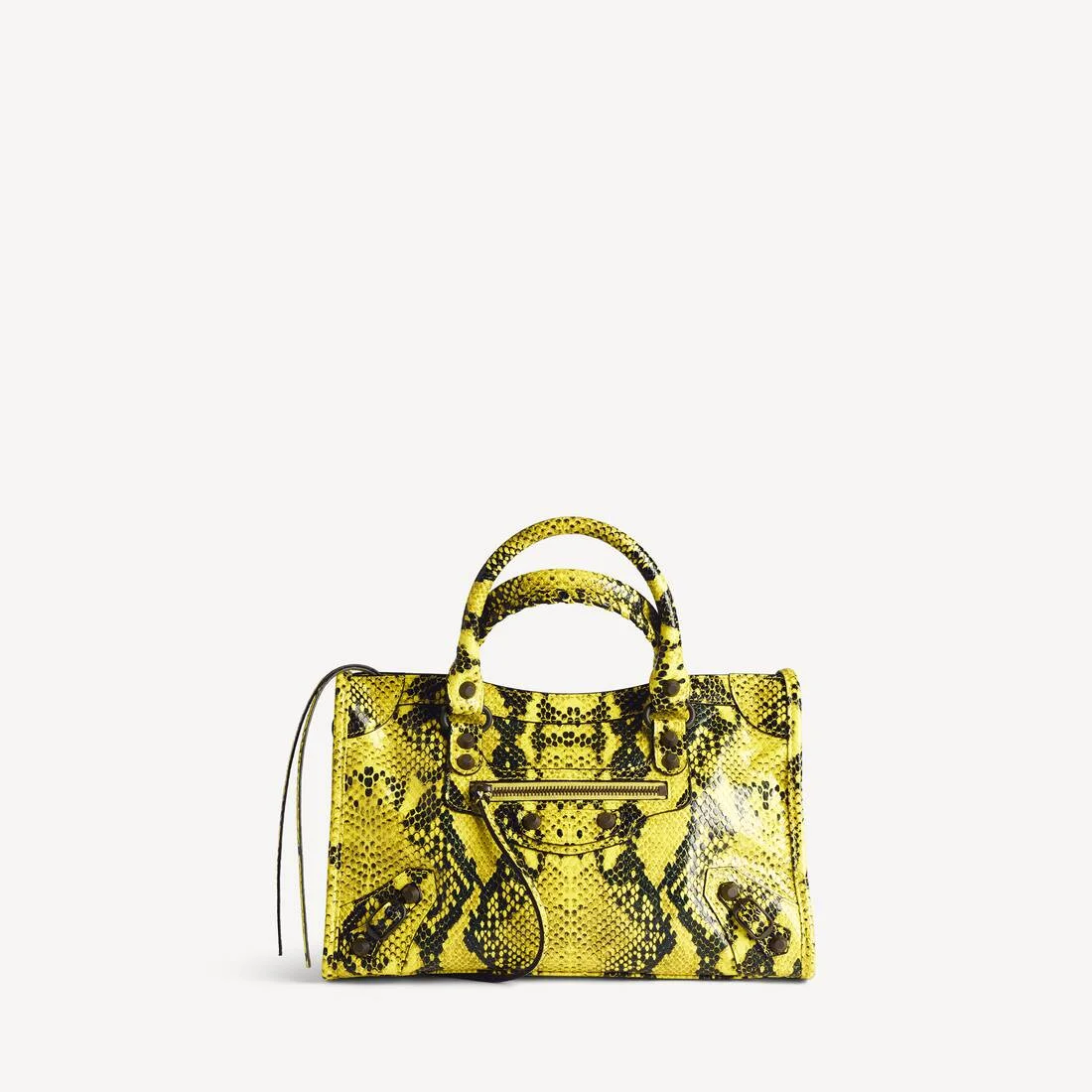 Le City Bag Small in yellow python embossed calfskin, brass hardware PRODUCT DETAILS • Python embossed calfskin • Two leather hand-braided handles • Adjustable and removable shoulder strap • Brass hardware • Zipped closure with knotted leather puller • Front zipped pocket with knotted leather puller • 1 inner zipped pocket • Cotton canvas lining • Made in Italy Material: calfskin