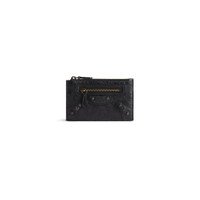 Le City Long Coin And Card Holder in black Arena Storico lambskin PRODUCT DETAILS • Dimensions: L5,3 x H3,1 x W0,4 inch • Arena Storico lambskin • Long coin and card holder • Balenciaga logo debossed tone-on-tone at back • Brass hardware • Front zipped pocket • 1 zipped coin pouch • 1 receipt compartment • 5 card slots • Made in Italy Material: lambskin