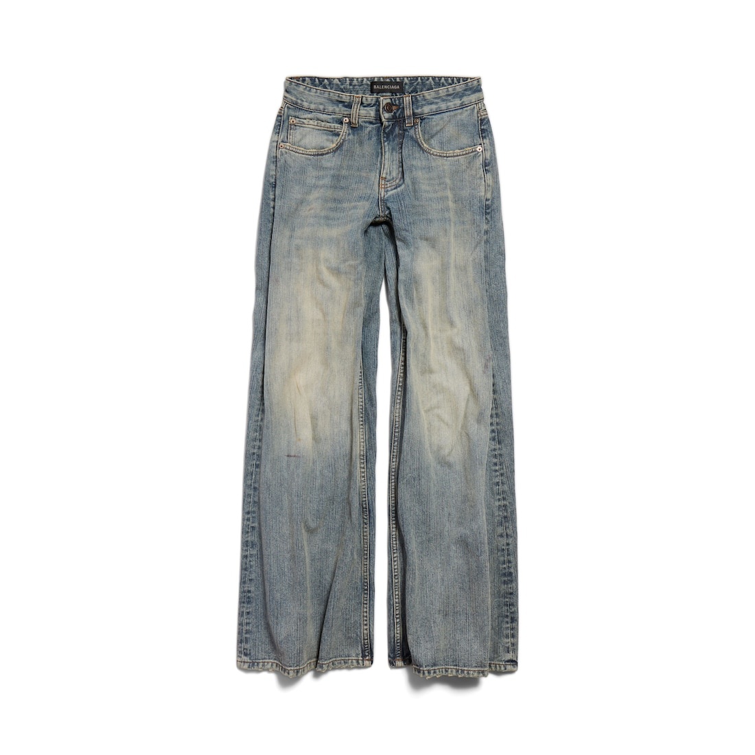 Low Waist Baggy Pants in stained blue Italian indigo denim PRODUCT DETAILS • Italian indigo cotton denim • Covered button fly • 5 belt loops • 5 pockets • Balenciaga engraved flex buttons • Balenciaga jacron at back • Made in Italy Main material: 100% cotton