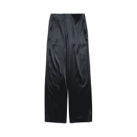 Minimal Fluid Pants in black stretch heavy satin for Women PRODUCT DETAILS • Stretch heavy satin • Minimal look • Back hook and zip closure • 2 slash pockets • Made in Italy Main material: 98% acetate, 2% elastane