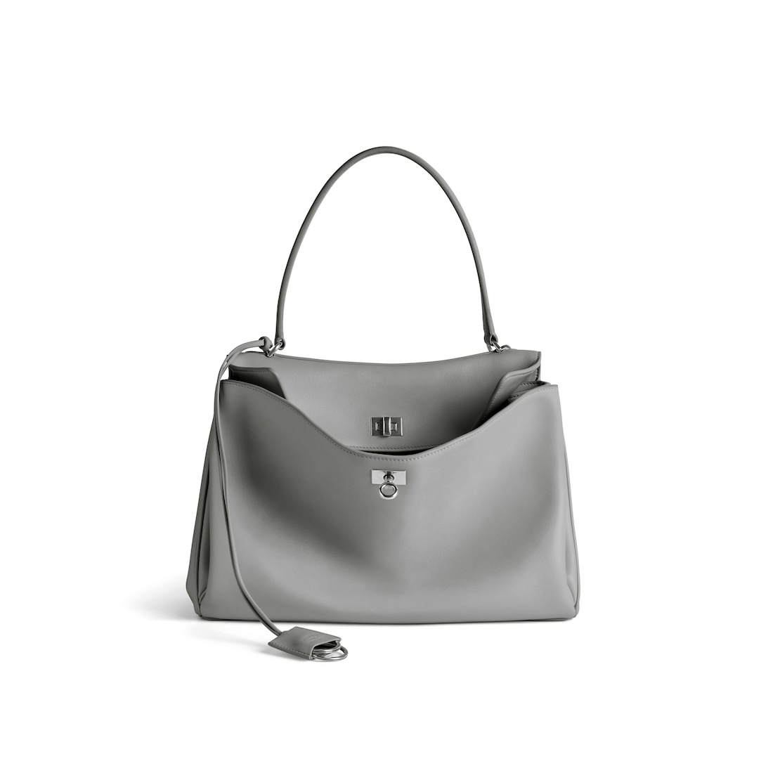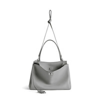 Rodeo Handbag Medium in cloud grey smooth calfskin, aged-silver hardware PRODUCT DETAILS • Dimensions: L13,8 x H9,2 x W4,3 inch • Smooth calfskin • Handbag • One handle (drop: 8,1 inch) • Removable shoulder strap (drop: 22,6 inch) • Removable leather key holder with two split rings • Aged-silver hardware • Turn lock closure • Wide front pocket • 1 main compartment • 1 inner zipped pocket • 2 flat pockets at back • Side snaps • 4 brass feet • Nappa lambskin lining • Made in Italy Material: calfskin