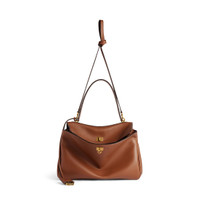 Rodeo Handbag Medium in new tan smooth calfskin, aged-gold hardware PRODUCT DETAILS • Smooth calfskin • Handbag • One handle • Removable shoulder strap • Removable cloche cles with two split rings • Aged-gold hardware • Turn lock closure • Wide front pocket • 1 main compartment • 1 inner zipped pocket • 2 flat pockets at back • Side snaps • 4 brass feet • Nappa lambskin lining • Made in Italy Material: calfskin