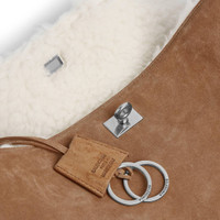 Rodeo Handbag Medium in noce suede calfskin and white fleece, aged-silver hardware PRODUCT DETAILS • Suede calfskin, wool, polyester, acrylic • Handbag • One handle • Removable shoulder strap • Removable cloche cles with two split rings • Aged-silver hardware • Turn lock closure • Wide front pocket • 1 main compartment • 1 inner zipped pocket • 2 flat pockets at back • Side snaps • 4 brass feet • Nappa lambskin lining • Made in Italy Material: calfskin, wool, polyester, acrylic
