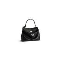 Rodeo Handbag Mini in black smooth calfskin, aged-silver hardware PRODUCT DETAILS • Smooth calfskin • Handbag • One handle hand carry • Removable crossbody strap • Removable cloche cles with two split rings • Aged-silver hardware • Turn lock closure • Wide front pocket • 1 main compartment • 2 flat pockets at back • Side snaps • 4 brass feet • Nappa lambskin lining • Made in Italy Material: calfskin