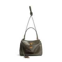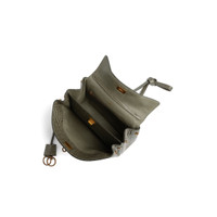 Rodeo Handbag Small in army green crocodile embossed calfskin, aged-gold hardware PRODUCT DETAILS • Dimensions: L11,4 x H7,9 x W3,9 inch • Crocodile embossed calfskin • Handbag • One handle (drop: 7,3 inch) • Removable shoulder strap (drop: 22,2 inch) • Removable cloche cles with two split rings • Aged-gold hardware • Turn lock closure • Wide front pocket • 1 main compartment • 1 inner zipped pocket • 2 flat pockets at back • Side snaps • 4 brass feet • Nappa lambskin lining • Made in Italy Material: calfskin