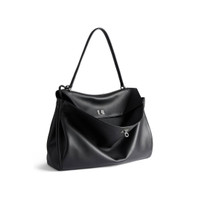 Rodeo Large Handbag in black smooth calfskin, aged-silver hardware PRODUCT DETAILS • Dimensions: L15,7 x H11,8 x W5,1 inch • Smooth calfskin • Handbag • One handle (drop: 9 inch) • Removable shoulder strap (drop: 22,4 inch) • Removable leather key holder with two split rings • Aged-silver hardware • Turn lock closure • Wide front pocket • 1 main compartment • 1 inner zipped pocket • 2 flat pockets at back • Side snaps • 4 brass feet • Nappa lambskin lining • Made in Italy Material: calfskin
