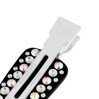 Salon BB Clip Set of 2 in silver brass, stainless steel and black acetate with rhinestones PRODUCT DETAILS • Brass, stainless steel, acetate and glass • Hair clip with rhinestones • BB logo engraved • Set of 2 • Made in Italy • This item is nickel-free, lead-free, and hypoallergenic Material: acetate, glass, brass, steel