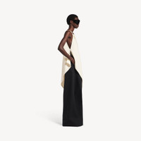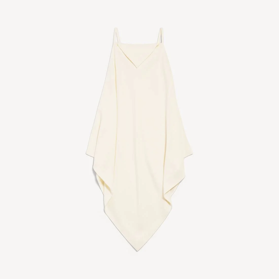Scarf Top in ivory silk and wool crepe is from look 18 of Balenciaga's Summer 26 Collection. PRODUCT DETAILS • Silk and wool crepe • Scarf-inspired top • Square neckline with a pointed draped panel • Thin straps • Sleeveless design • Pointed hem • Single-stitch construction on each side • Side slits • Made in Italy Main material: 65% silk, 35% wool