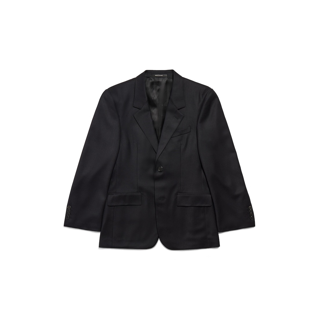 Standard Tailored Jacket in new black wool for Women is from several looks of Balenciaga Winter 25 Collection. PRODUCT DETAILS • Tailoring wool • Notch lapel • Simple-breasted 2 button front • 1 piped pocket at chest • 2 flap pockets at front • 4 button cuffs • 1 vent at back • Made in Italy Main material: 100% wool