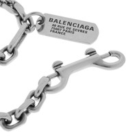 Tags Carabiner Bracelet in antique silver brass PRODUCT DETAILS • Dimensions: S: L7,4 x H4,14 x W0,32 inch • Brass • Bracelet • Link chain bracelet with tag • Balenciaga logo engraved • Headquarter address engraved • Double-sided carabiner closure • Made in Italy • This item is nickel-free, lead-free, and hypoallergenic Material: brass