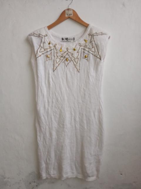 Kansai Yamamoto Vintage Knitwear Dress – White Gold Embroidered Sleeveless Long Dress