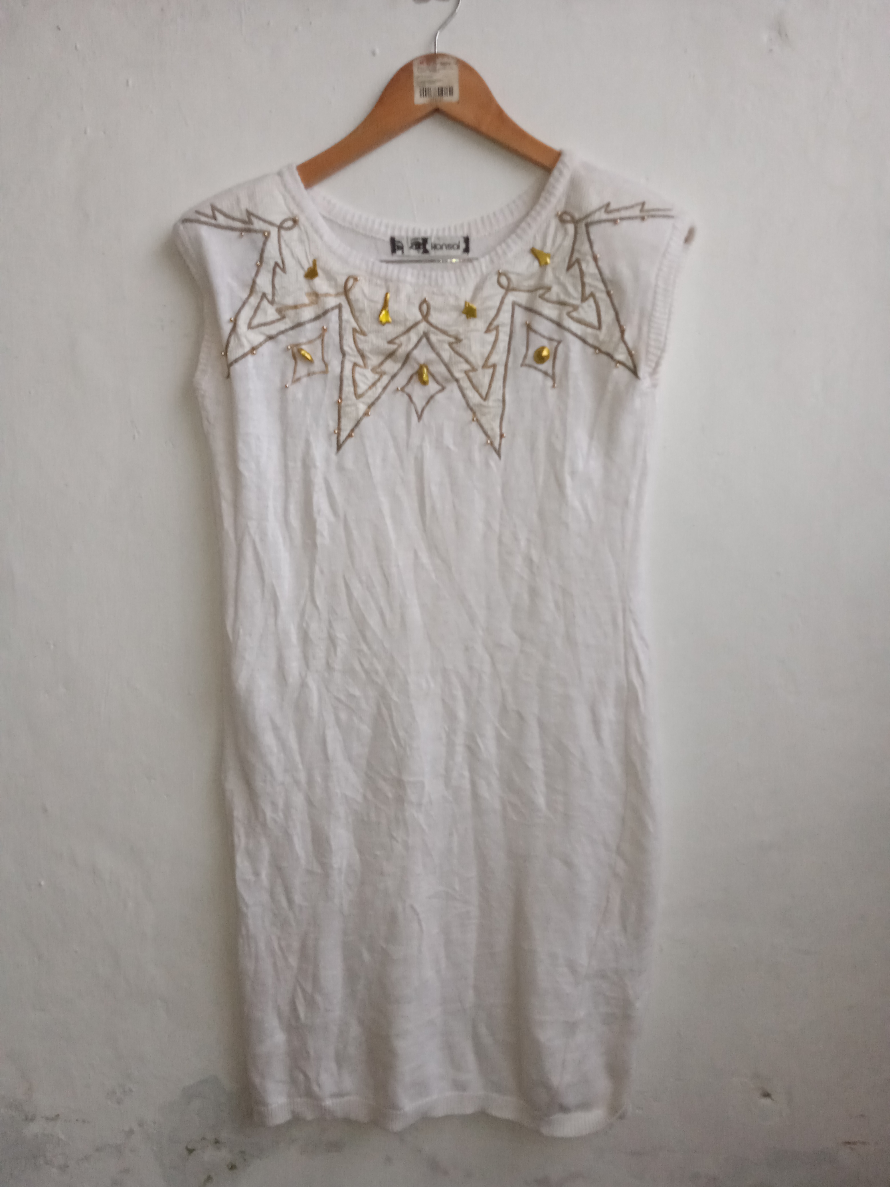 Kansai Yamamoto dress Kansai Yamamoto vintage Japanese designer dress Avant garde fashion Japan Vintage knitwear dress White knit dress Embroidered knit dress Gold embellished dress Rare Japanese fashion Collectible designer clothing Vintage women’s dress Designer long dress