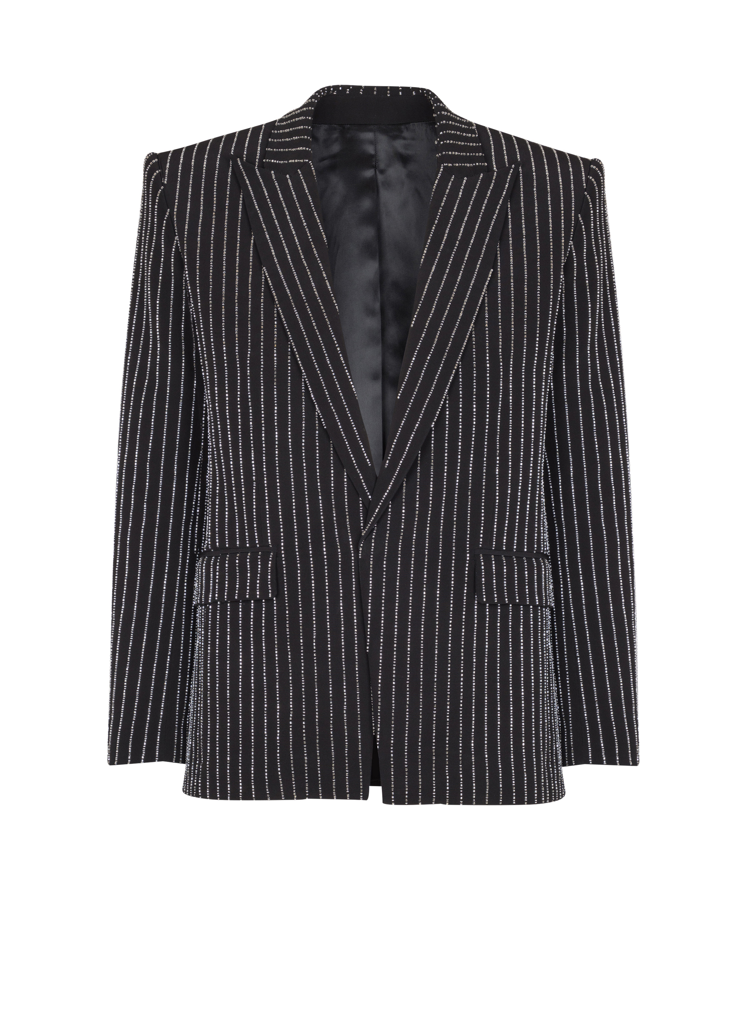1-button wool jacket with crystal stripes - Italian tailored collar - Long sleeves with buttons on the end - Chest pocket, welt side pockets with a flap - Single button fastening - Lined - Straight cut - Model measures 191cm and wears a size 48 - Main material: 100% viscose - Made in India - Item: FH0SE466PD27100% of the viscose fibres used to make this garment come from certified, sustainably managed forests