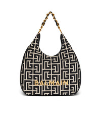 1945 Soft Hobo Large tote bag in jacquard fabric with a PB Labyrinth monogram - Carry in the hand or wear on the shoulder - Metal Balmain logo - Chain handle interlaced with leather - Metal side plaques with engraved B buttons - Leather side gusset - Magnetic clasp - Twill lining - Inside zipped pocket - Inside patch pocket - Embossed leather card pocket - Gold hardware - Dimensions: 5.5 x 45.5 x 38 cm - Main material: 84% cotton 16% polyester - Made in Italy - Item: FN1BT929TJQX