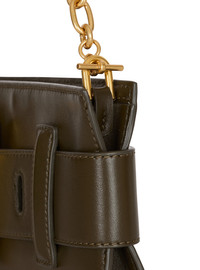 Anthem calfskin leather clutch - Belted style - Carry in the hand, across the body or on the shoulder - Leather belt and belt loops - Metal PB-engraved buckle - Metal PB logo on the back - Magnetic fastening - Embossed leather inside card pocket - Detachable chain strap - Gold hardware - Dimensions: 2.5 x 30 x 11 cm - Main material: 100% calfskin - Made in Italy - Item: GN1LB024LSAX
