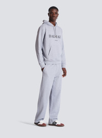Balmain printed hoodie - Relaxed fit - Round neck - Drawstring hood - Long sleeves - Vintage Balmain logo printed on the front - Kangaroo pocket - Engraved silver aglets, eyelets and stoppers - Ribbed edging - Model measures 190cm and wears a size M - Main material: 100% cotton - Made in Portugal - Item: FH2JR090BD33