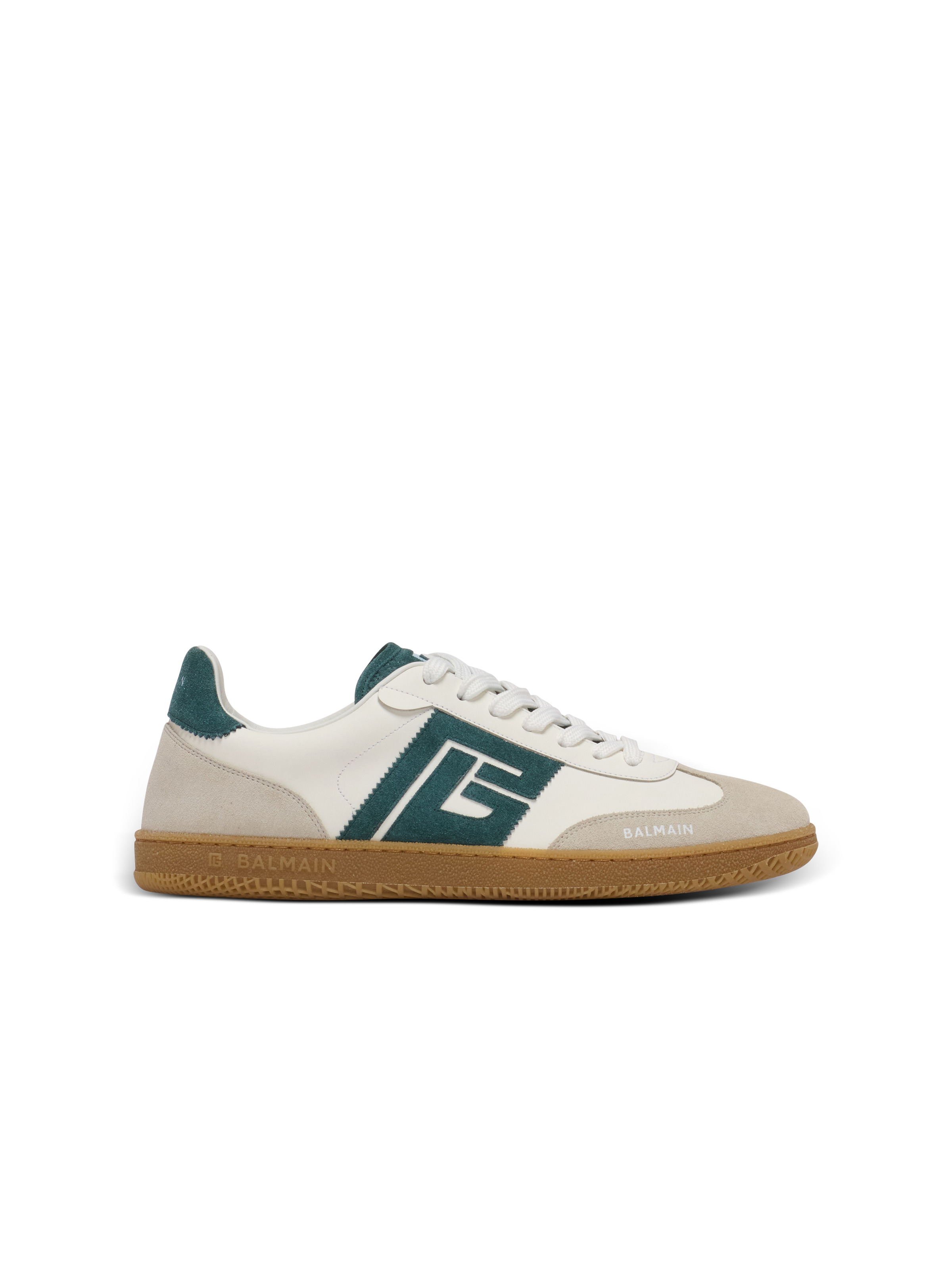 Balmain Swan suede and smooth calfskin leather trainers - Lace fastening - Diamond pattern embossed leather tongue with PB logo - Contrasting PB logo on the sides - Balmain logos embossed on the front and back - Textured rubber outsole with raised Balmain logo - Leather lining and insole - Main material: 100% calfskin - Made in France - Item: FM1VI360LCWE