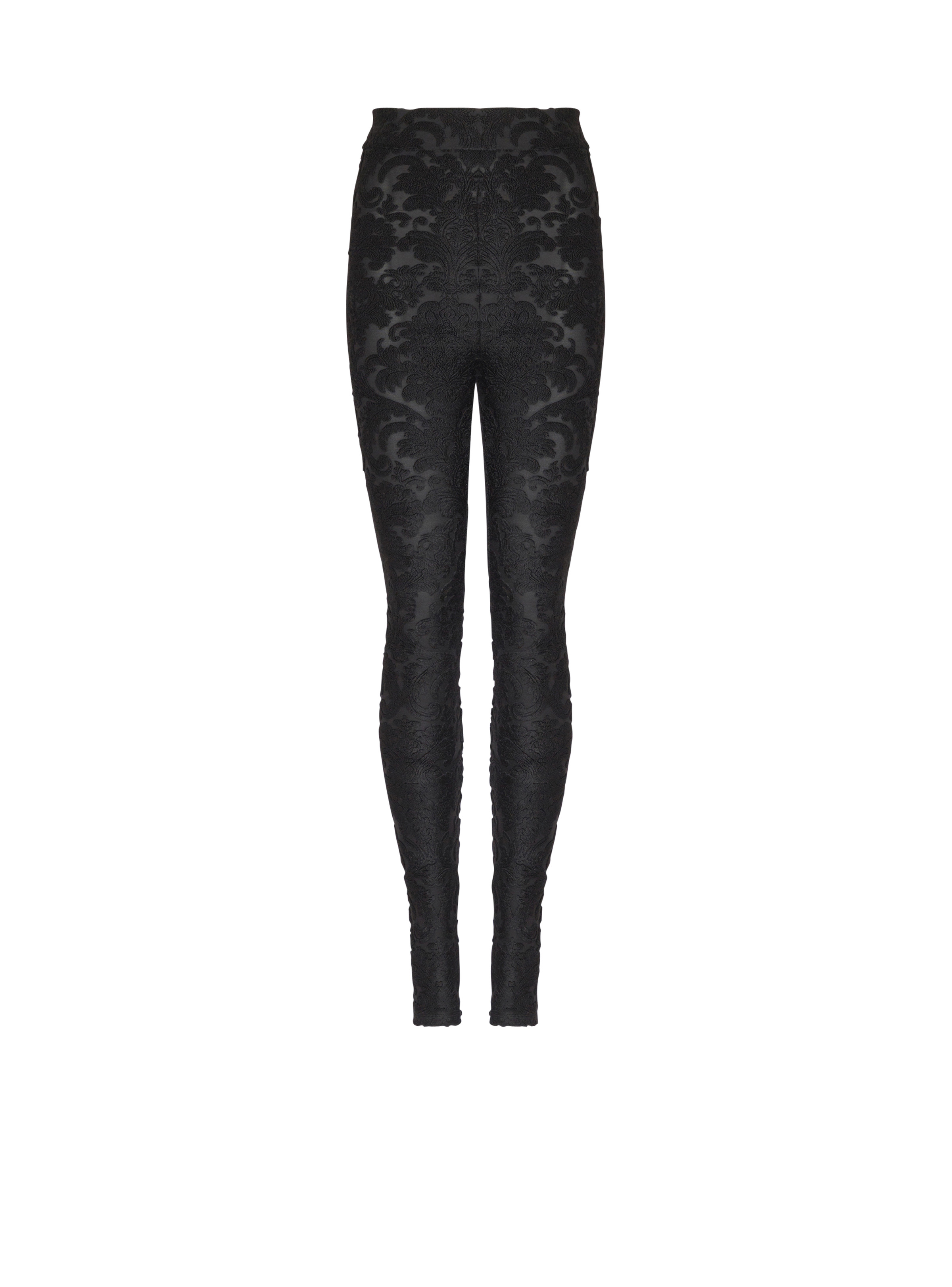 Boucle baroque patterned leggings - Built-in reinforced waistband - Visible gold metal zip fastening on the back with Balmain Paris-engraved slider - Invisible ankle zips - Fitted and high-waisted - Model measures 178cm and wears a size 36 - Main material: 65% viscose 35% polyester - Made in France - Item: FF1OC041JK65