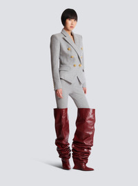 Cotton knit 6-button jacket - Italian tailored collarLong sleeves with 6 functional "Lion Head" buttons - Welt side pockets with a flap - Double-breasted fastening with two buttonholes - LinedTailored fit - Model measures 178cm and wears a size 36 - Main material: 50% virgin wool 47% cotton 3% polyamide - Made in Bulgaria - Item: FF0SI505JL17