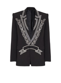 Crepe 1-button jacket with crystals