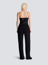 Plain crepe straight-leg tailored trousers - Waistband with belt loops and a triple belt loop at the back - Zip and hook fastening under a placket - 2 Italian side pockets - Pressed front pleats - Model measures 176cm and wears a size 36 - Main material: 100% viscose - Made in Slovakia - Item: EF0PO160VB00100% of the viscose fibres used to make this garment come from certified, sustainably managed forests
