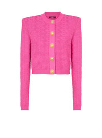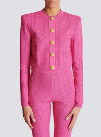 Cropped monogrammed knit cardigan