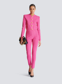 PB Labyrinth knit cardigan - Round neckline - Structured shoulders - Long sleeves - Front fastening with 5 golden metal "Coin" press stud buttons - Ribbed trim - Cropped slim fit - Model measures 179cm and wears a size 36 - Main material: 68% viscose 18% cupro 9% polyester 4% metallic polyester 1% elastane - Made in France - Item: EF2KL250KG96100% of the viscose fibres used to make this garment are recycled and certified