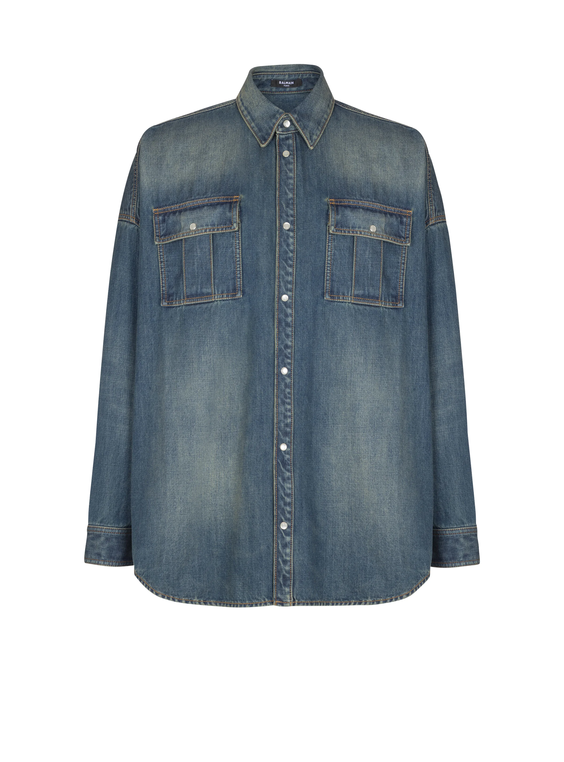 Denim shirt - Buttoned shirt collar - Short sleeves - Faded denim - Button fastening - 2 buttoned pockets on the chest - Relaxed fit - Main material: 100% cotton - Made in Romania - Item: FH0HC155DG04