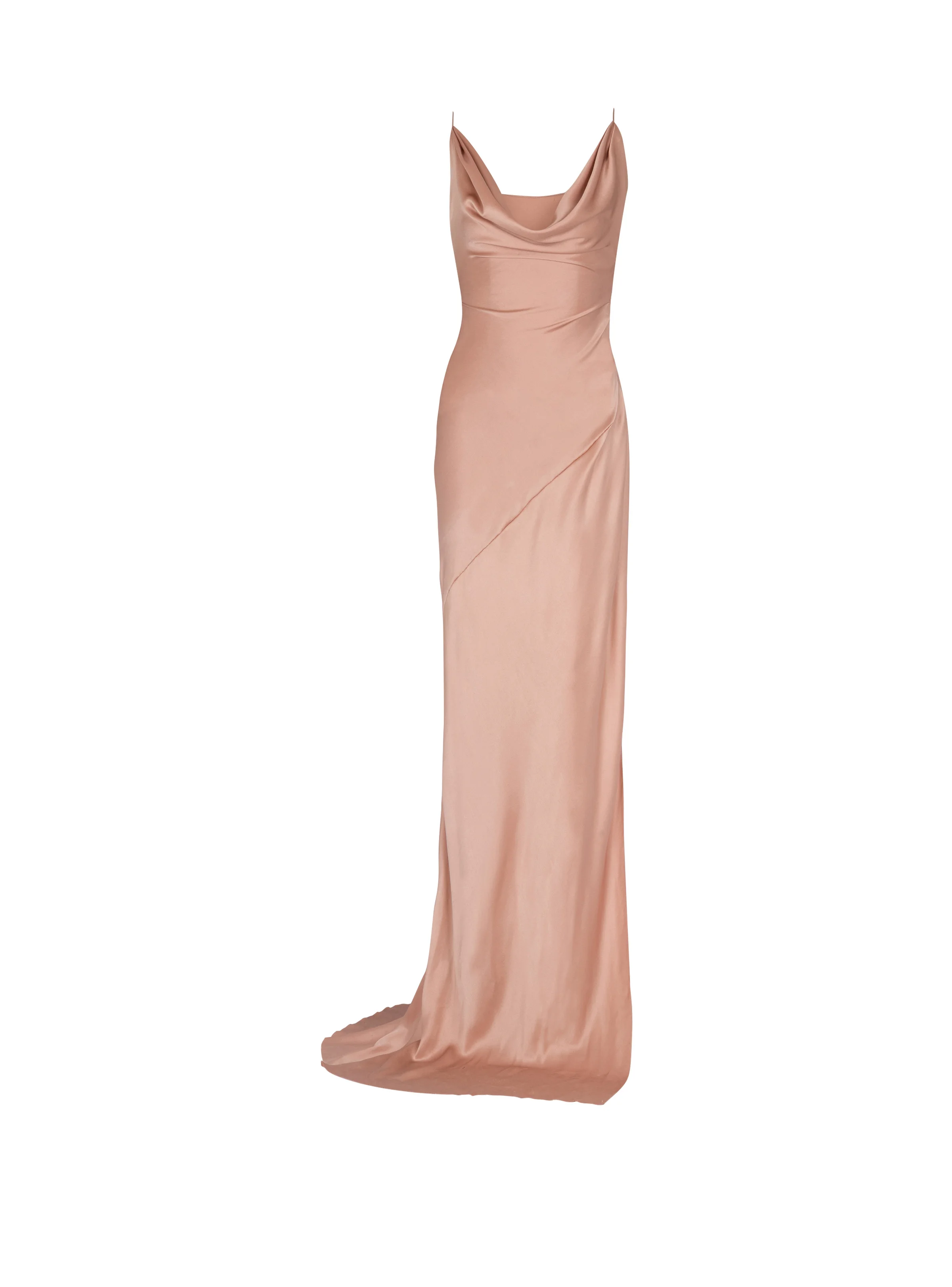 Draped plain satin slit dress - Cowl neck - Thin straps - Invisible side zip fastening - Flowing fitted cut - Model measures 178cm and wears a size 36 - Main material: 100% silk - Made in Portugal - Item: EF0RN156SE95