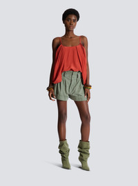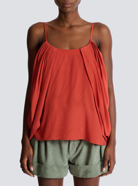 Draped silk crepe top